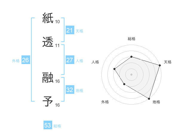 紙透 融予さんの天格は21画の5点!