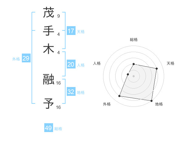 茂手木 融予さんの天格は17画の4点!