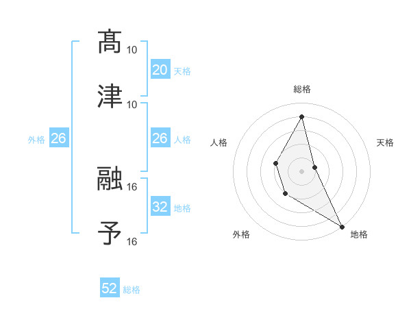 髙津 融予さんの総格は52画の4点!
