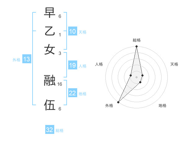 早乙女 融伍さんを姓名の画数から五運を鑑定