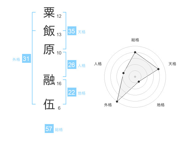 粟飯原 融伍さんを姓名の画数から五運を鑑定