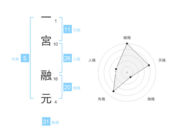 一宮 融元さんの総格は31画の5点!