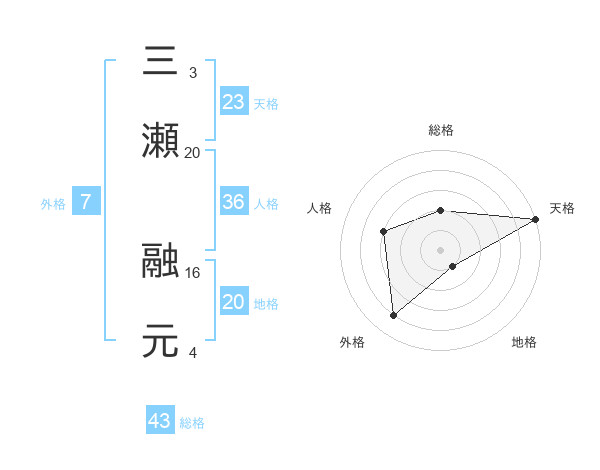 三瀬 融元さんを姓名の画数から五運を鑑定