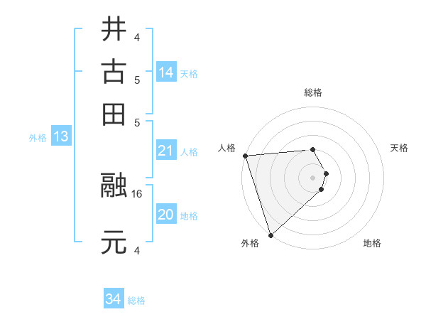 井古田 融元さんの人格は21画の5点!