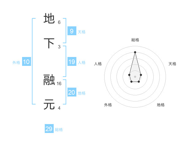地下 融元さんの総格は29画の4点!