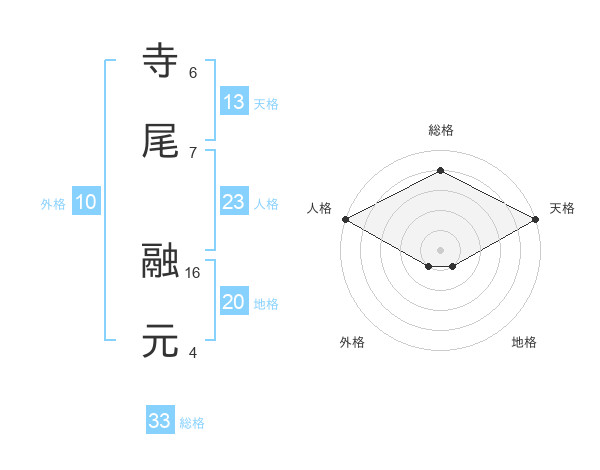 寺尾 融元さんを姓名の画数から五運を鑑定