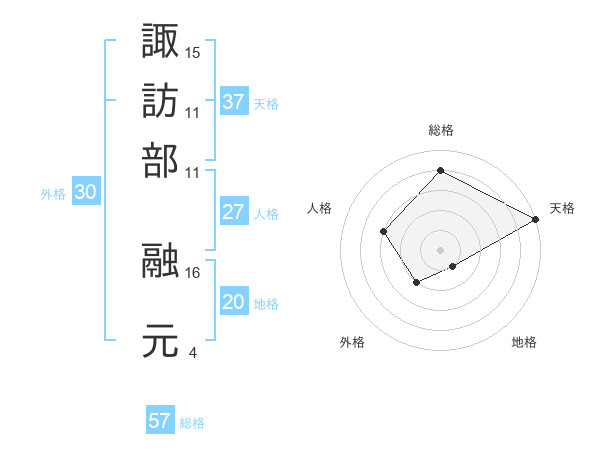 諏訪部 融元さんの総格は57画の4点!