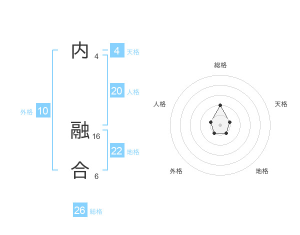 内 融合さんの総格は26画の2点!