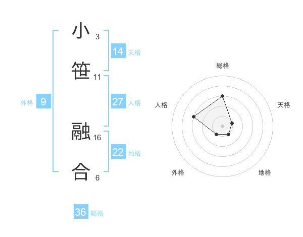 小笹 融合さんの天格は14画の1点!