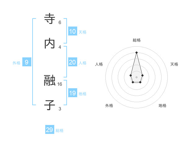 寺内 融子さんの総格は29画の4点!