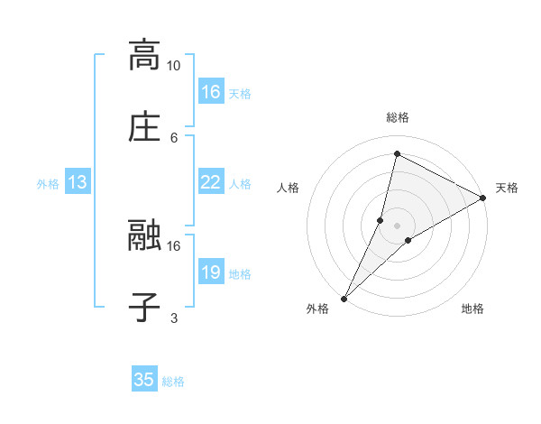 高庄 融子さんの外格は13画の5点!