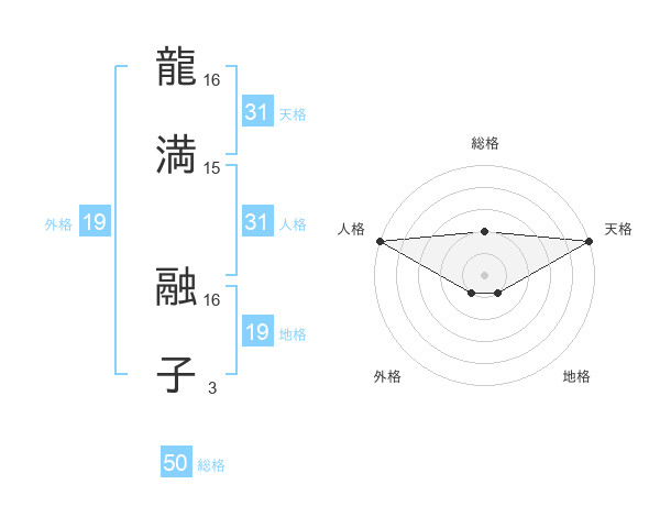 龍満 融子さんの天格は31画の5点!