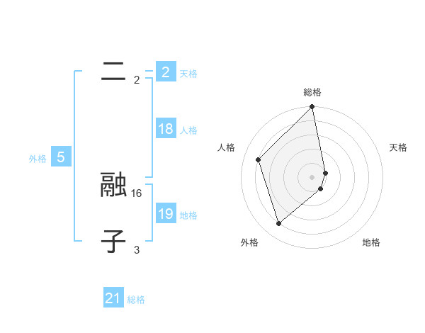 二 融子さんの総格は21画の5点!