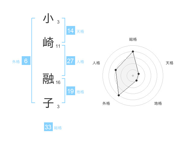 小崎 融子さんの総格は33画の4点!
