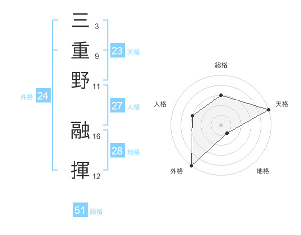 三重野 融揮さんを姓名の画数から五運を鑑定