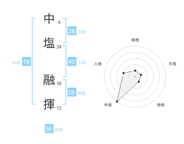 中塩 融揮さんの総格は56画の1点!