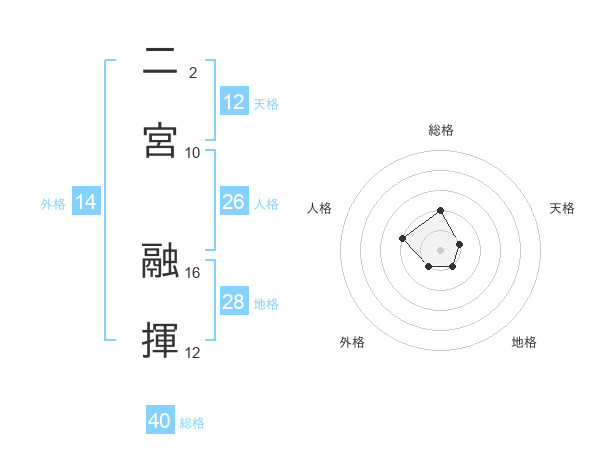 二宮 融揮さんの総格は40画の2点!