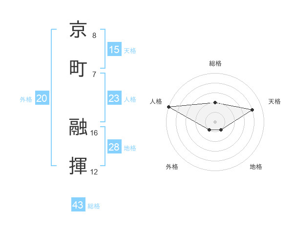 京町 融揮さんの天格は15画の4点!