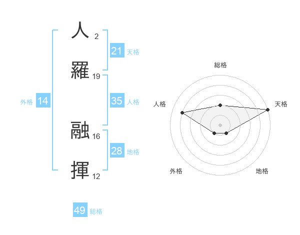 人羅 融揮さんを姓名の画数から五運を鑑定