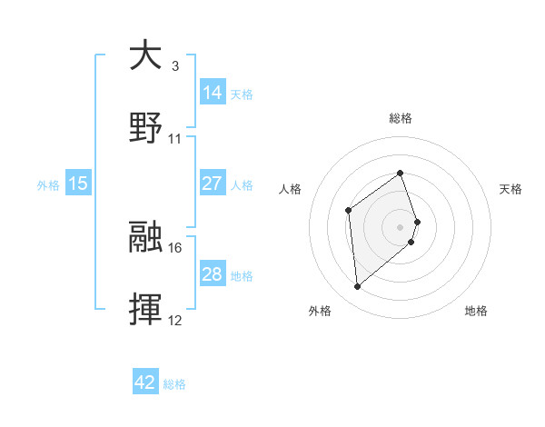 大野 融揮さんの総格は42画の3点!