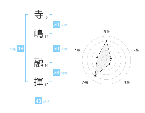 寺嶋 融揮さんを姓名の画数から五運を鑑定