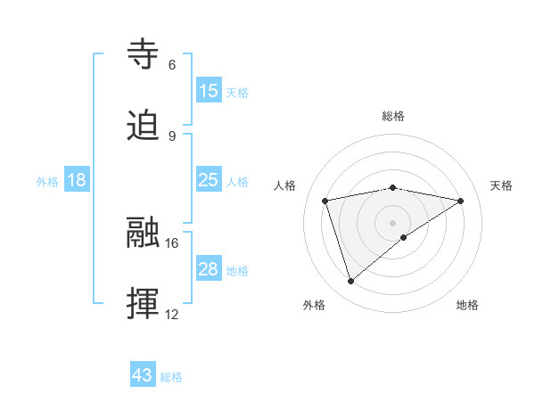 寺迫 融揮さんの天格は15画の4点!
