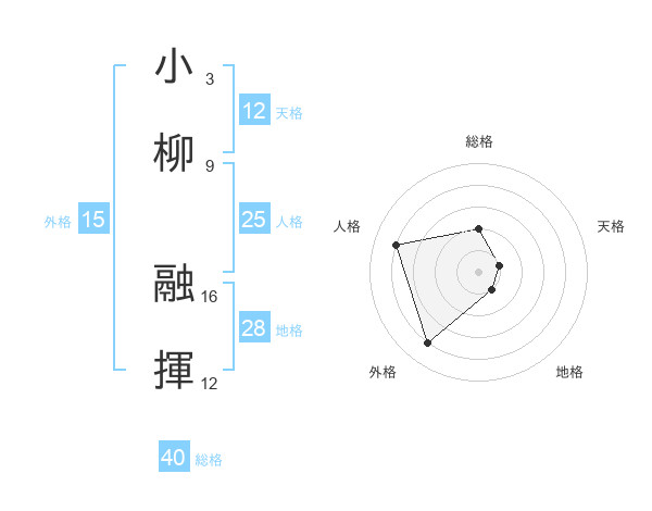 小柳 融揮さんの天格は12画の1点!