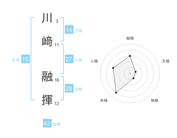 川﨑 融揮さんを姓名の画数から五運を鑑定