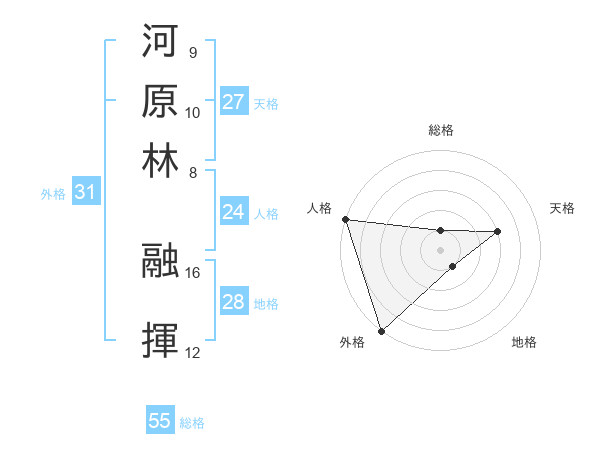 河原林 融揮さんを姓名の画数から五運を鑑定