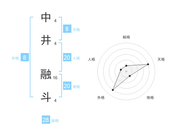 中井 融斗さんの総格は28画の1点!