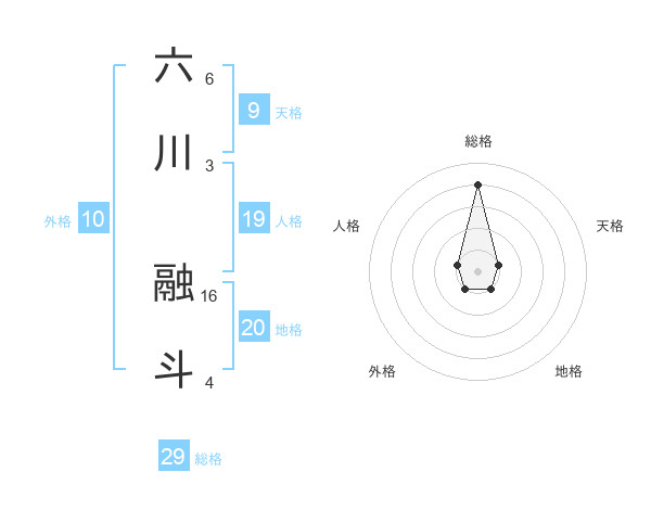 六川 融斗さんの総格は29画の4点!