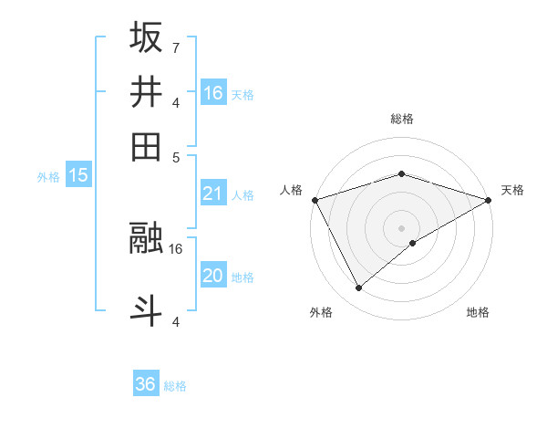 坂井田 融斗さんを姓名の画数から五運を鑑定