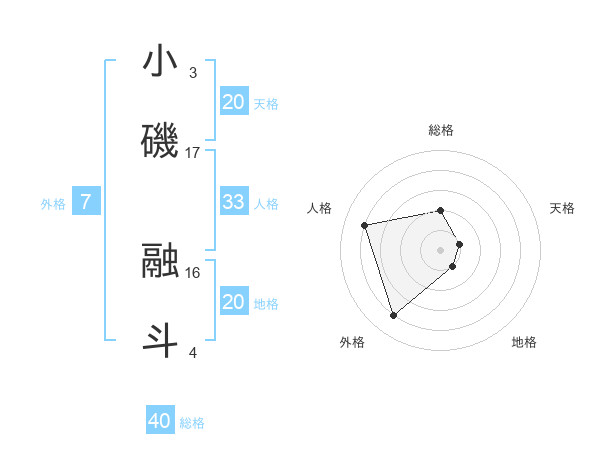 小磯 融斗さんの天格は20画の1点!