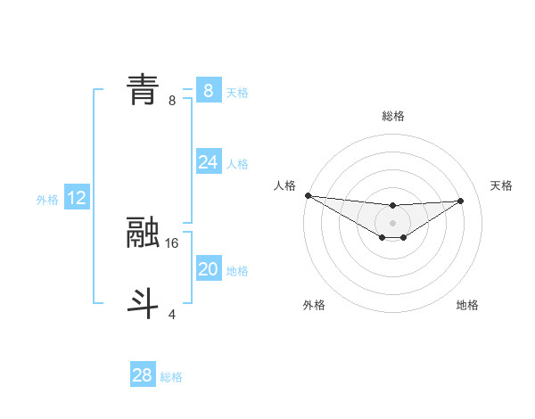 青 融斗さんの総格は28画の1点!