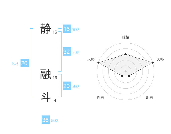 静 融斗さんの天格は16画の5点!