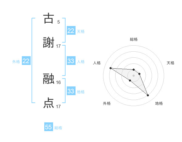 古謝 融点さんの総格は55画の1点!