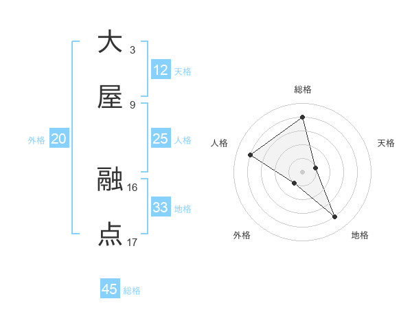 大屋 融点さんの総格は45画の4点!