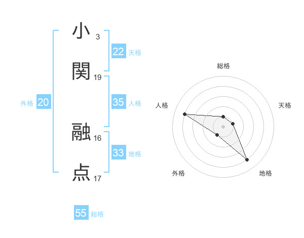 小関 融点さんの総格は55画の1点!