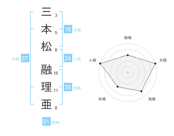 三本松 融理亜さんの総格は51画の3点