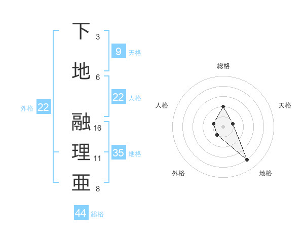 下地 融理亜さんを姓名の画数から五運を鑑定