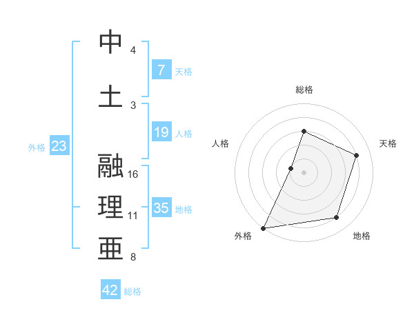 中土 融理亜さんを姓名の画数から五運を鑑定