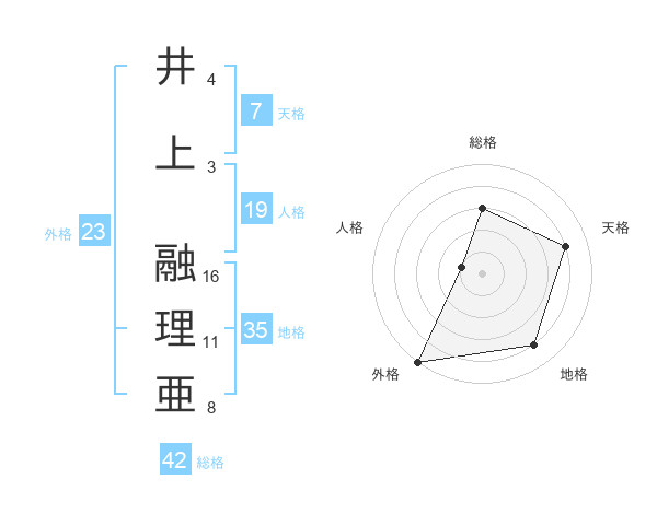 井上 融理亜さんを姓名の画数から五運を鑑定