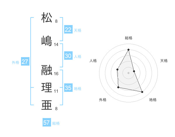 松嶋 融理亜さんの総格は57画の4点!