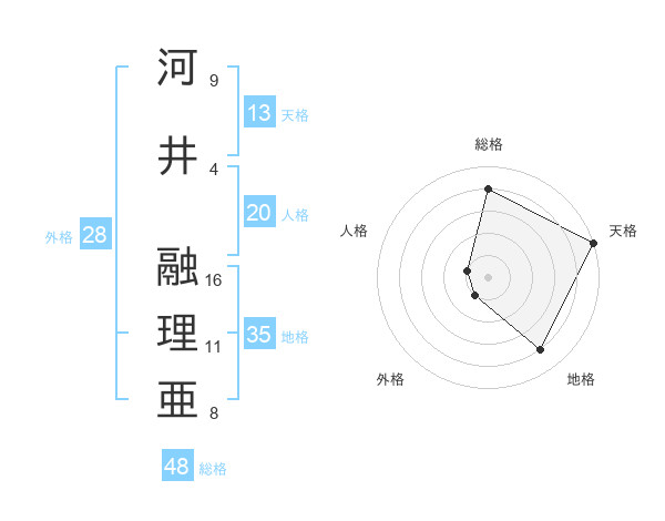 河井 融理亜さんを姓名の画数から五運を鑑定