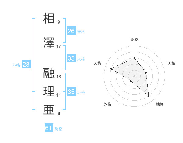 相澤 融理亜さんを姓名の画数から五運を鑑定