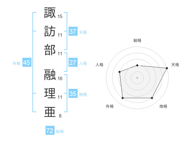 諏訪部 融理亜さんを姓名の画数から五運を鑑定