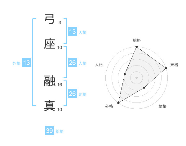 弓座 融真さんの外格は13画の5点!