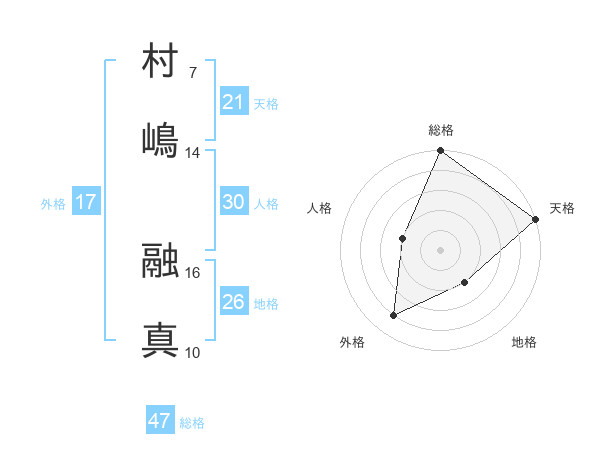 村嶋 融真さんを姓名の画数から五運を鑑定