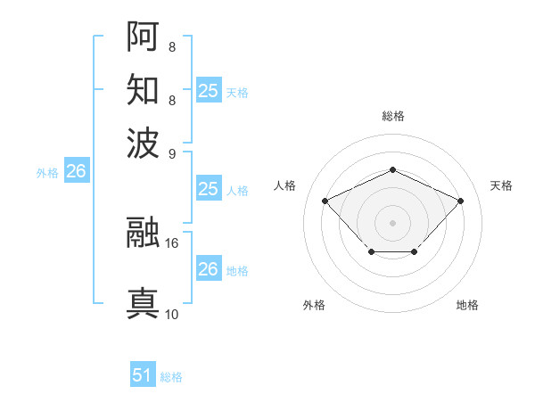 阿知波 融真さんを姓名の画数から五運を鑑定
