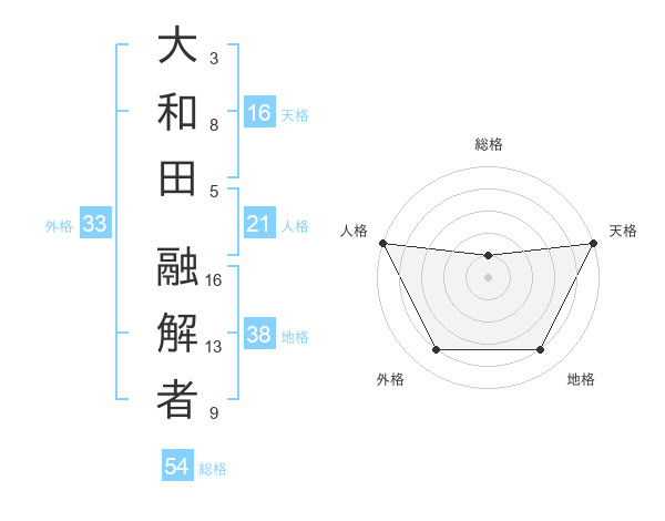 大和田 融解者さんを姓名の画数から五運を鑑定